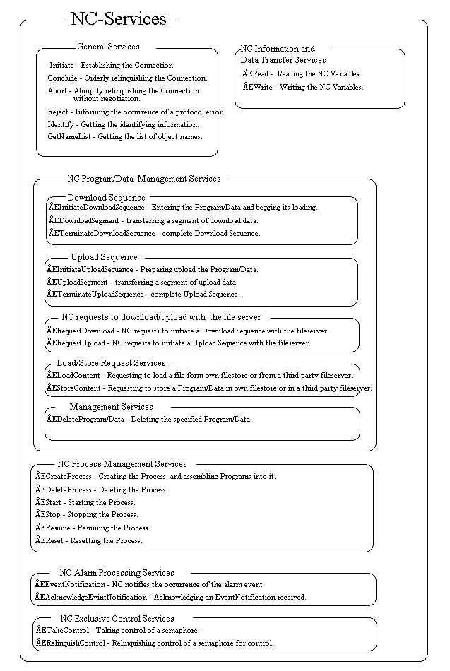Services of the MMS NC-CS, shown in a Figure 3.2.2, are defined for the following functions.