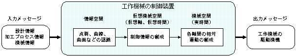 OSE研究会のリーダである摂南大学の和田教授は「CNCの基本機能とは予め与えられた空間形状情報を制御対象の駆動装置を動かすための制御情報に変換するための1種の情報変換装置である」と述べている(図 1-1)。工作機械はCNCの基本機能に加工作業を行うための種々の支援機能が集約されたものである。図 1-2に示すように従来のCNCはその機能がブラックボックスになっていた。パソコンCNCは情報処理系との融合を実現した第1段階のオープンコントローラであるが、工作機械やCNCとしてのアーキテクチャや標準インタフェースの視点がまだまだ欠落している。