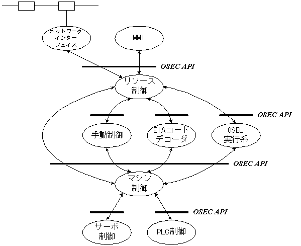 | 動作生成 | OSEL実行系 | OSELによる加工プログラムの最終出力であるOSEL-Xを解釈し動作生成をを行う。 | |