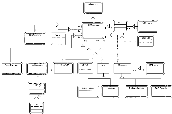 機械クラスライブラリでは仮想的なプログラム座標系から物理的な機械座標系への変換や実I/O指令など、機械に依存した処理への展開がメソッドの形で記述されている。工具クラスライブラリは工具に関するデータライブラリで、加工特徴クラスライブラリからは工具の寸法や加工条件を得るために、機械クラスライブラリからは実際の工具の名称を得るために参照される。